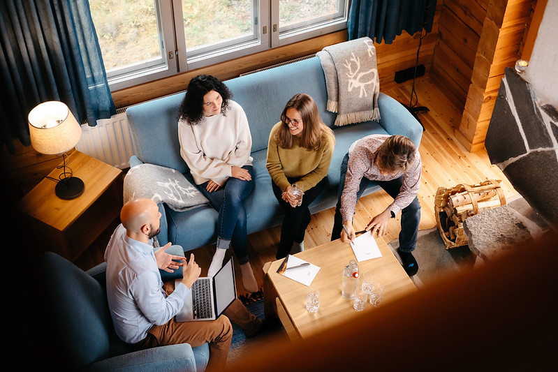 The Aihki apartments bring the natural wonder of Lapland inside their doors. Surrounded by a peaceful forest., the design and materials of the apartments honor the area. Each apartment has a bedroom for two, living room with a fireplace, kitchen, bathroom and sauna, and a spacious loft upstairs. The bathrooms, saunas and kitchens were renovated in 2019.